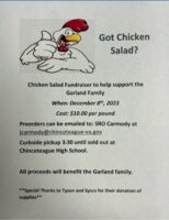 Chincoteague High School is holding a Chicken Salad Fundraiser to help support the Garland Family.