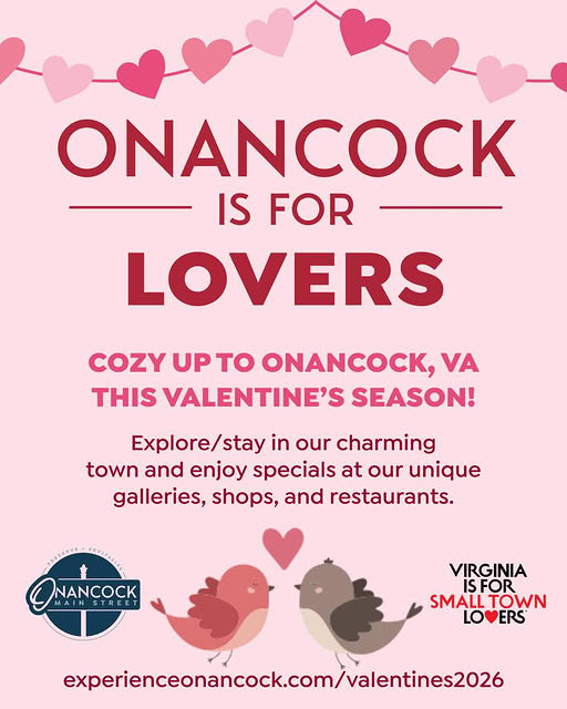 Bring your Valentine, or some of your GALentines, for a sweet weekend in historic Onancock on Virginia’s Eastern Shore. Stroll Onancock’s charming downtown and enjoy great food at some of the shore’s favorite restaurants. You’ll also find specials that everyone will love inside the shops and galleries. So, cozy up to Onancock for an unforgettable Valentine’s Day. Go to ExperienceOnancock.com to plan your trip.